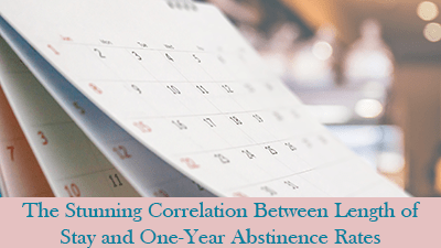 This pattern is seen not only in those reporting being abstinent for at least the previous 30 days but also for those who remained abstinent the entire year after leaving treatment. Less than 15% of those in treatment for twenty days or less reported avoiding all drugs and alcohol for the full twelve months compared to 33% of those who were in treatment for greater than 90 days.